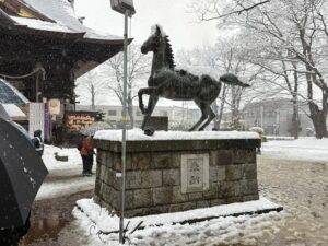 金峰神社は、2026年の干支【午】に関係する神社であるため境内には「神馬像」が配されていて、午年に参拝すると特に縁起が良いとされているそうです。そのせいか、凄く混んでいて駐車場待ちで20分ぐらい、参拝は40分ぐらい並んでいたと思います。無事に参拝もでき、私自身もパワーを頂いて来ました(*^-^*)