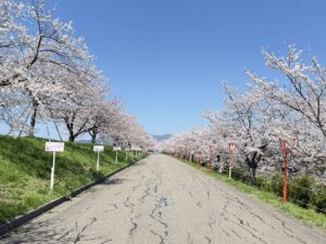 最初に訪れたのは大河津分水の桜。